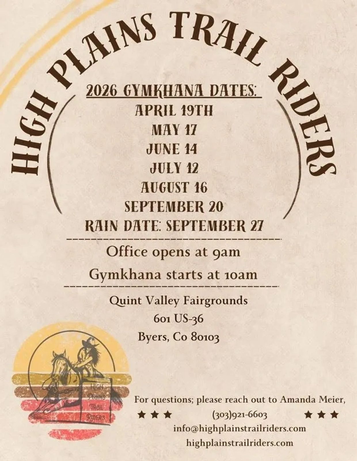 The majority of our events are currently held at the Byers Rodeo Grounds in Byers, CO. We offer Open Gymkhanas once a month, April - September Fundraisers are scheduled throughout the year, with our Annual Veteran's Fundraiser show every winter.